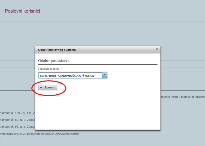U posebnom prozoru kliknuti ”Spremi” – za odabir poslodavca.