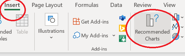 b) Odaberite ”insert” i ”recommended charts/preporučeni grafikoni”.
