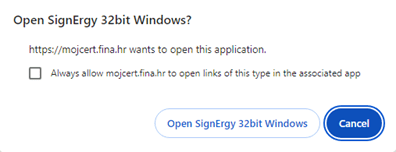 Kliknite na ”Open SignErgy 32bit Windows”.