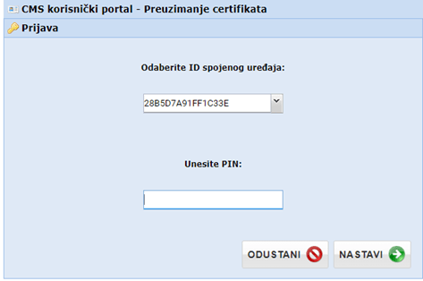 Unesite PIN svog tokena i kliknite ”nastavi”.