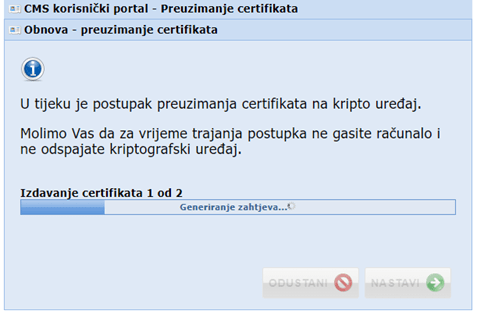 Izdavanje novih certifikata traje 2 do 3 minute.