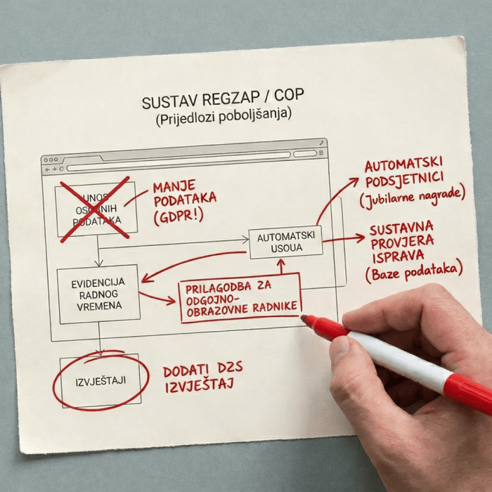 Vrijeme je za nove funkcionalnosti: oznaku matičnog poslodavca, automatske podsjetnike za radnike koji ostvaruju pravo na jubilarnu nagradu te sustavnu provjeru unesenih isprava usporedbom s podacima iz drugih baza. Time bi se izbjegla potreba da svaka škola zasebno provjerava isprave svojih zaposlenika.